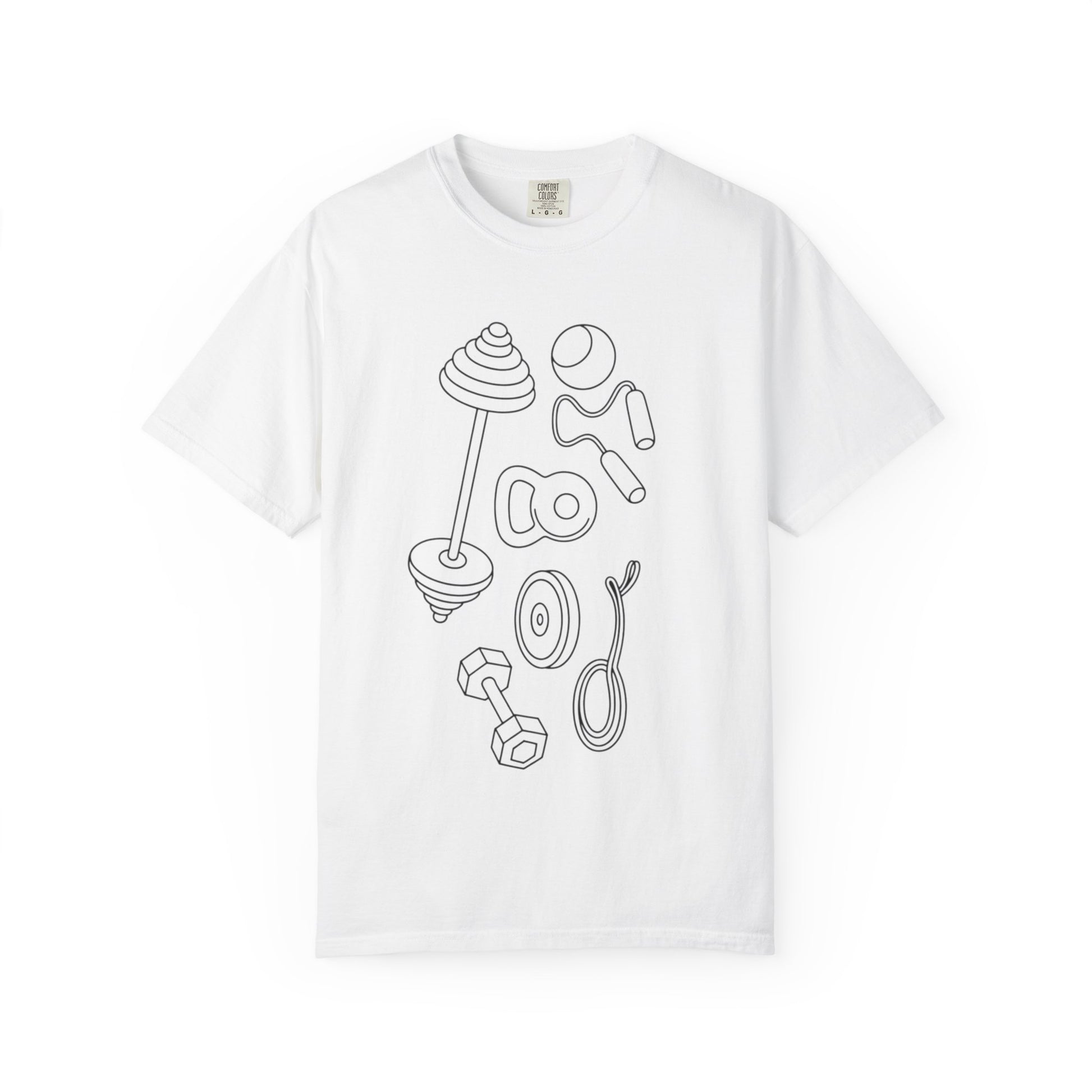 Fitness Gear Outline T-Shirt — Minimal Gym Equipment Design